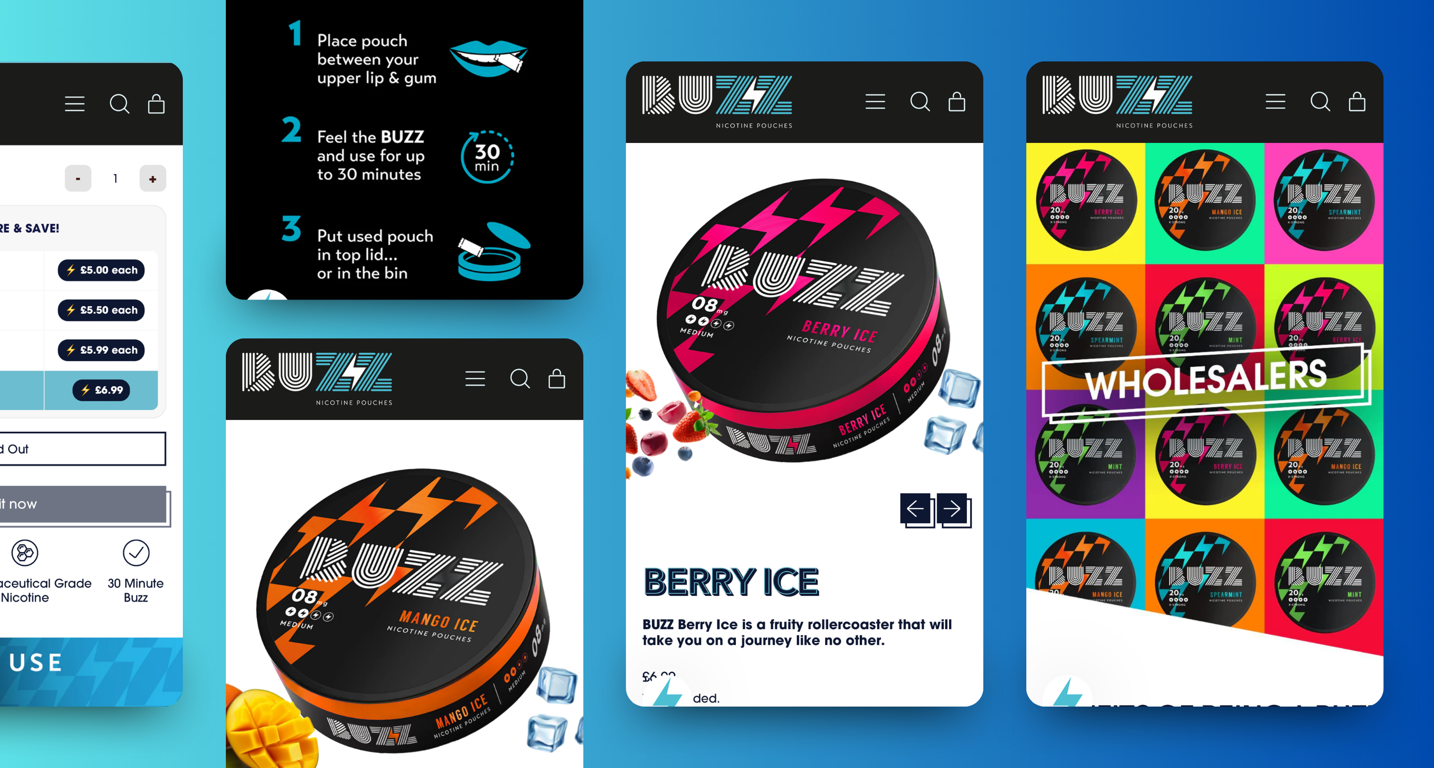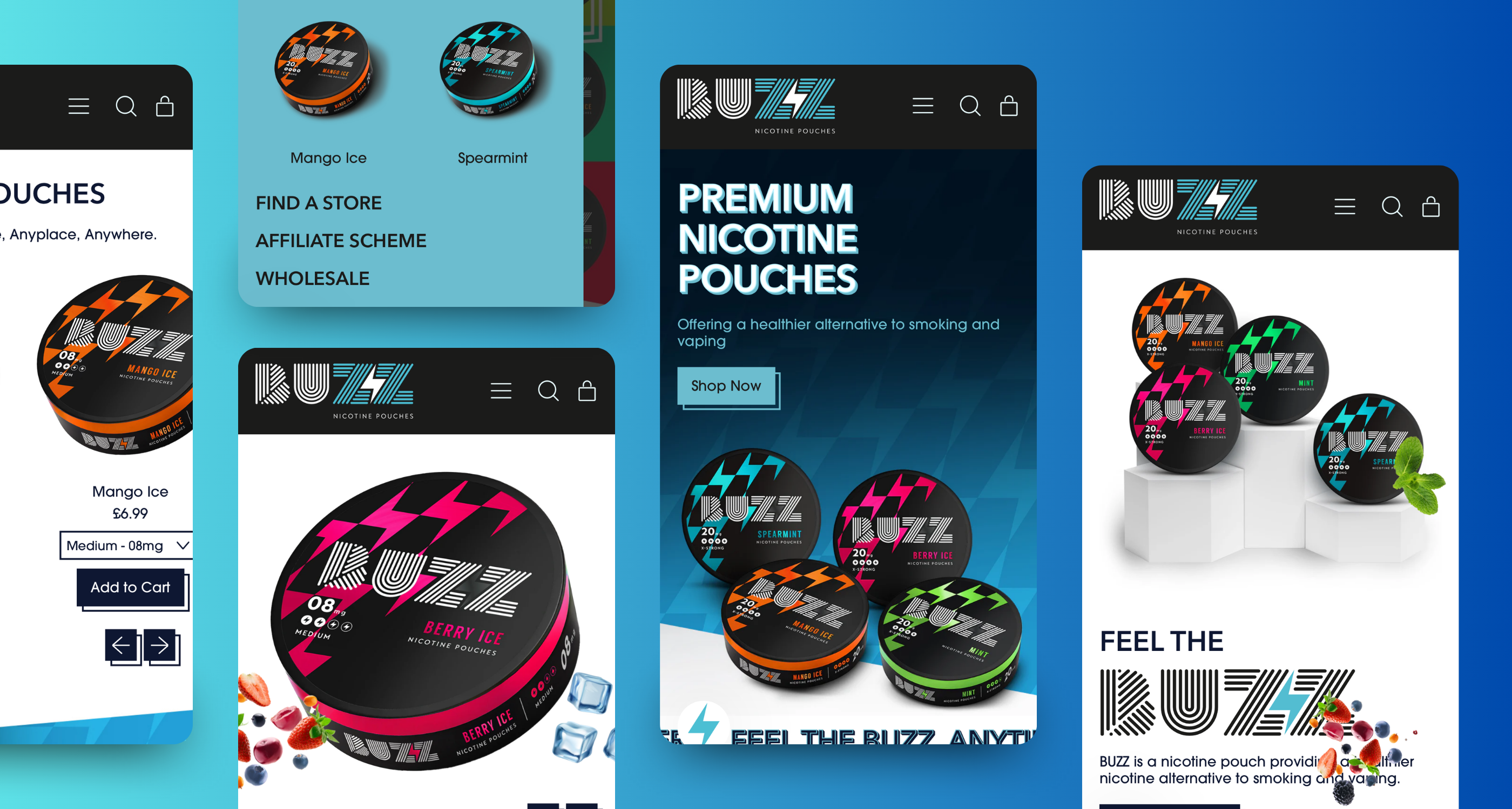 1HUTCH expertly brought Buzz's vision to life with a dynamic Shopify 2.0 store launch, designed to lead the SNUS market. We implemented quantity discounts, allowing customers to mix and match flavours, while integrating a referral-based loyalty scheme. Additionally, an interactive store locator was created to help users find Buzz stockists, and a custom affiliate program was set up to track referrals and commissions. Each feature was tailored to enhance the user experience and drive growth, resulting in a sleek, interactive website that meets Buzz’s goals.