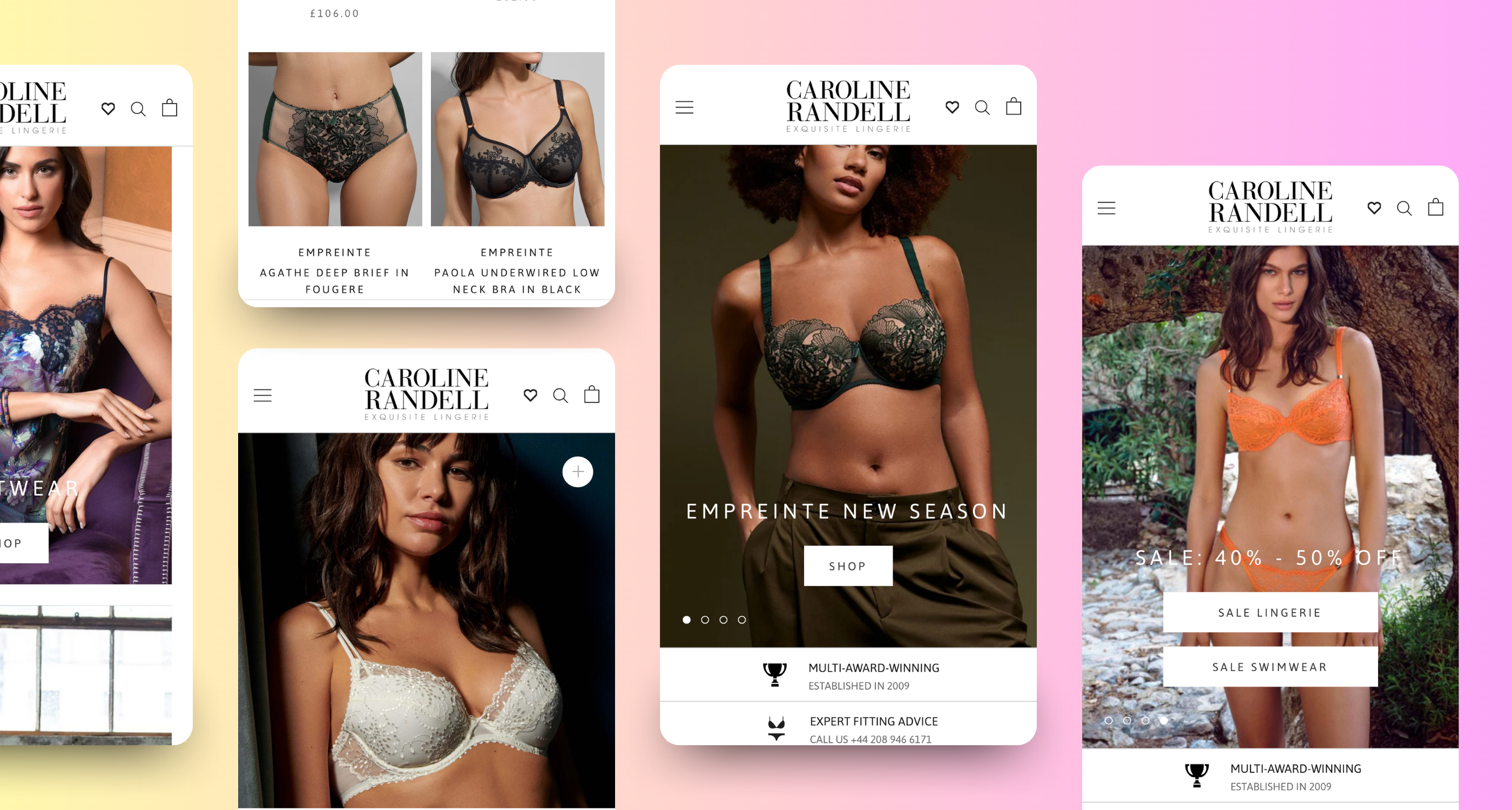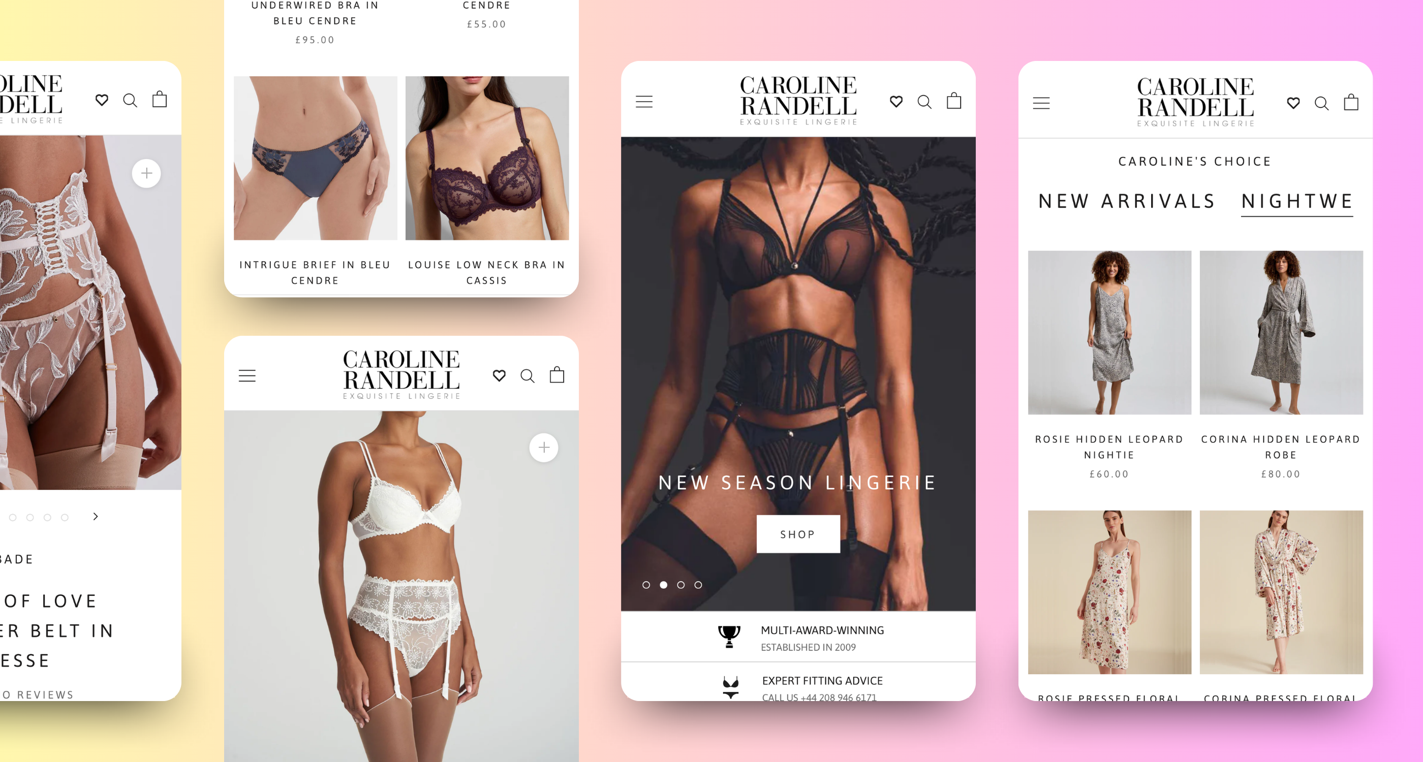 Caroline Randell contacted 1HUTCH for a new Shopify store build that would perfectly reflect her luxurious boutique brand. The brief included manual and CSV product uploads and optimising images for better performance. A Wishlist feature was also required, to allow customers to save items for later, build their lingerie wardrobe, and provide valuable data for targeted email marketing and reminders.