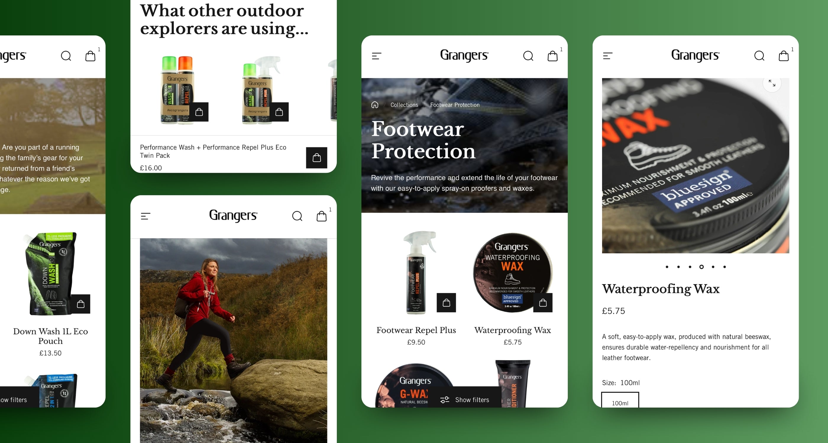 We took Grangers' vision and delivered a site that exceeded expectations. From a sleek Shopify 2.0 website to custom-built XML files for seamless ERP integration, we ticked every box in their brief. The subscription model we implemented adds value for loyal customers, while bespoke content pages, lifestyle imagery, and videos highlight Grangers' passion for the outdoors. By pushing Shopify’s capabilities, we created a site that embodies Grangers' prestigious brand and enhances their online presence, aligning perfectly with their goals.