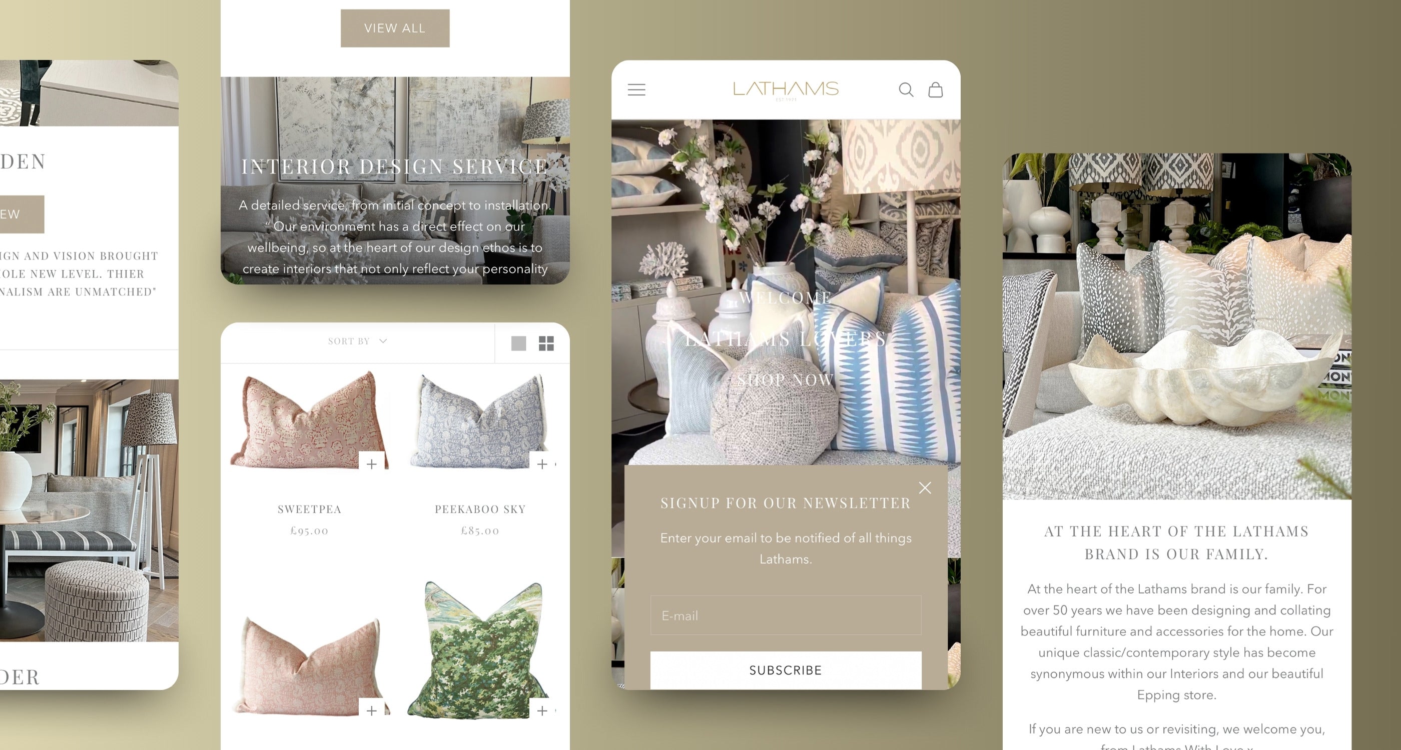 1HUTCH exceeded expectations with a complete replatform of Lathams onto Shopify 2.0, delivering a stunning website that perfectly reflects the elegance and prestige of their brand. By redesigning the site and crafting bespoke landing pages, we captured the essence of Lathams’ elite home accessories and interior design expertise. The new website showcases their portfolio beautifully, allowing customers to engage with the exquisite craftsmanship and unique products that have defined Lathams for over five decades.