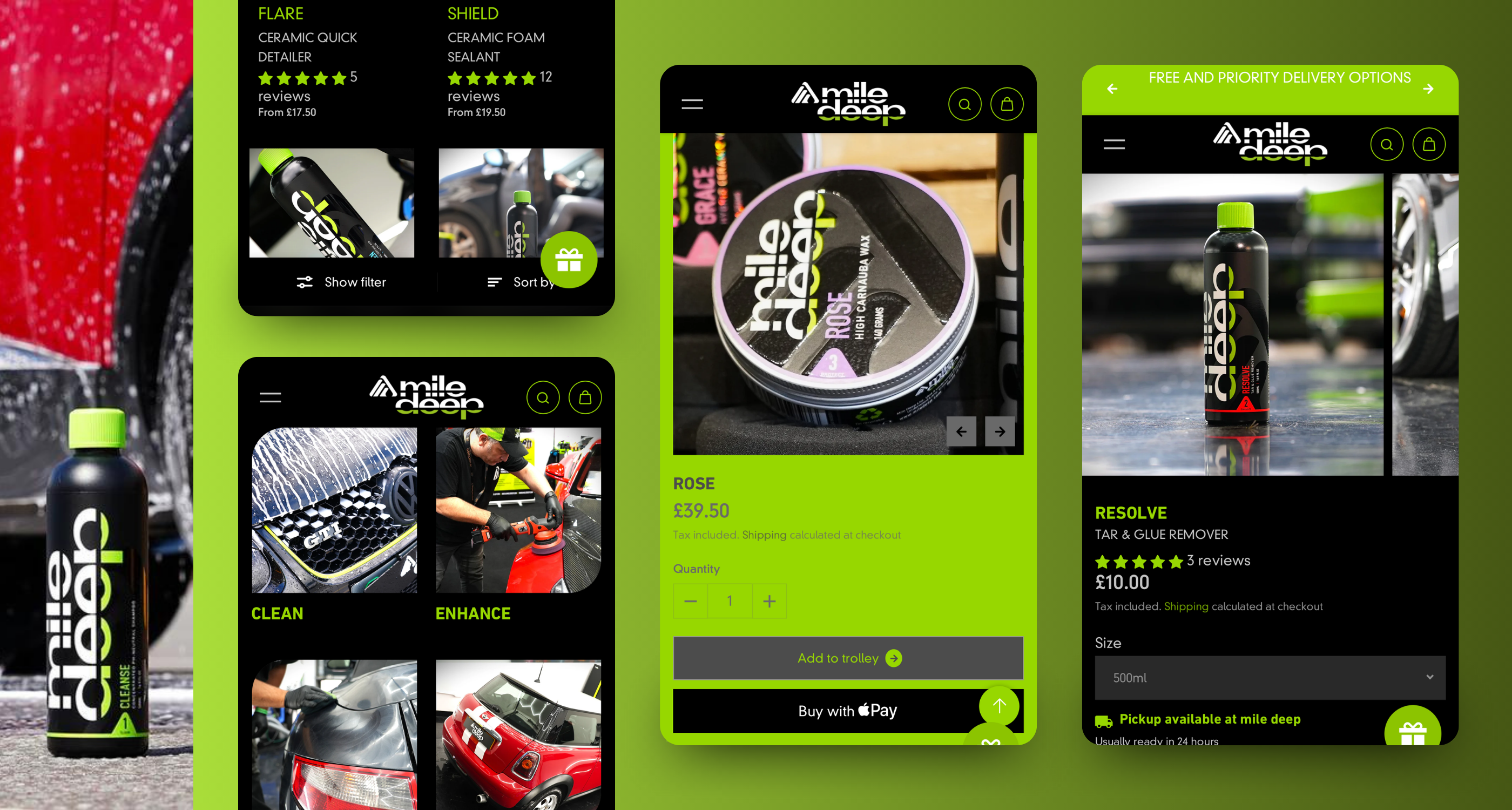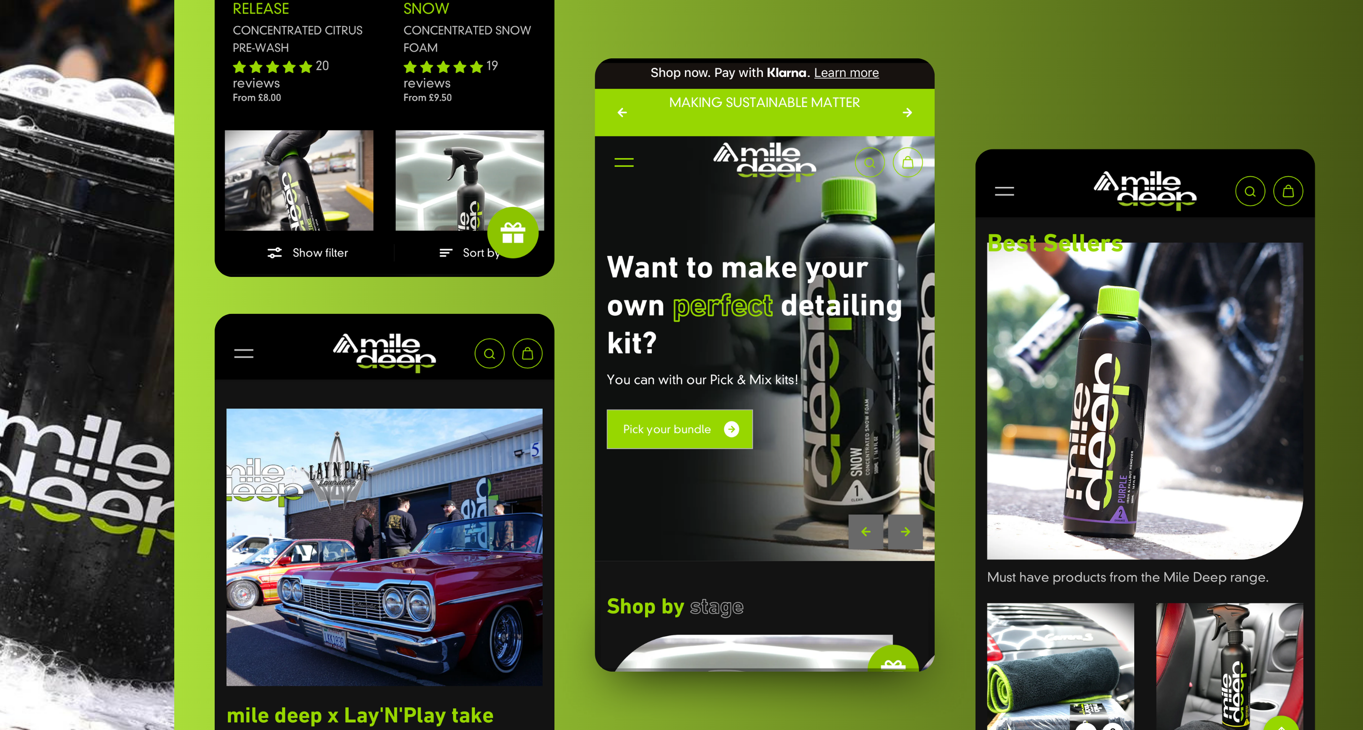Mile Deep approached us for a seamless migration from Wordpress to Shopify, as their previous site was difficult to manage and update. The brief included migrating their existing loyalty scheme; to include customer points and set up a new system allowing customers to earn and redeem points as cash value. Additionally, they required product bundles with SKU stock syncing to individual units, ensuring accurate stock management and a smooth pick-and-pack process.