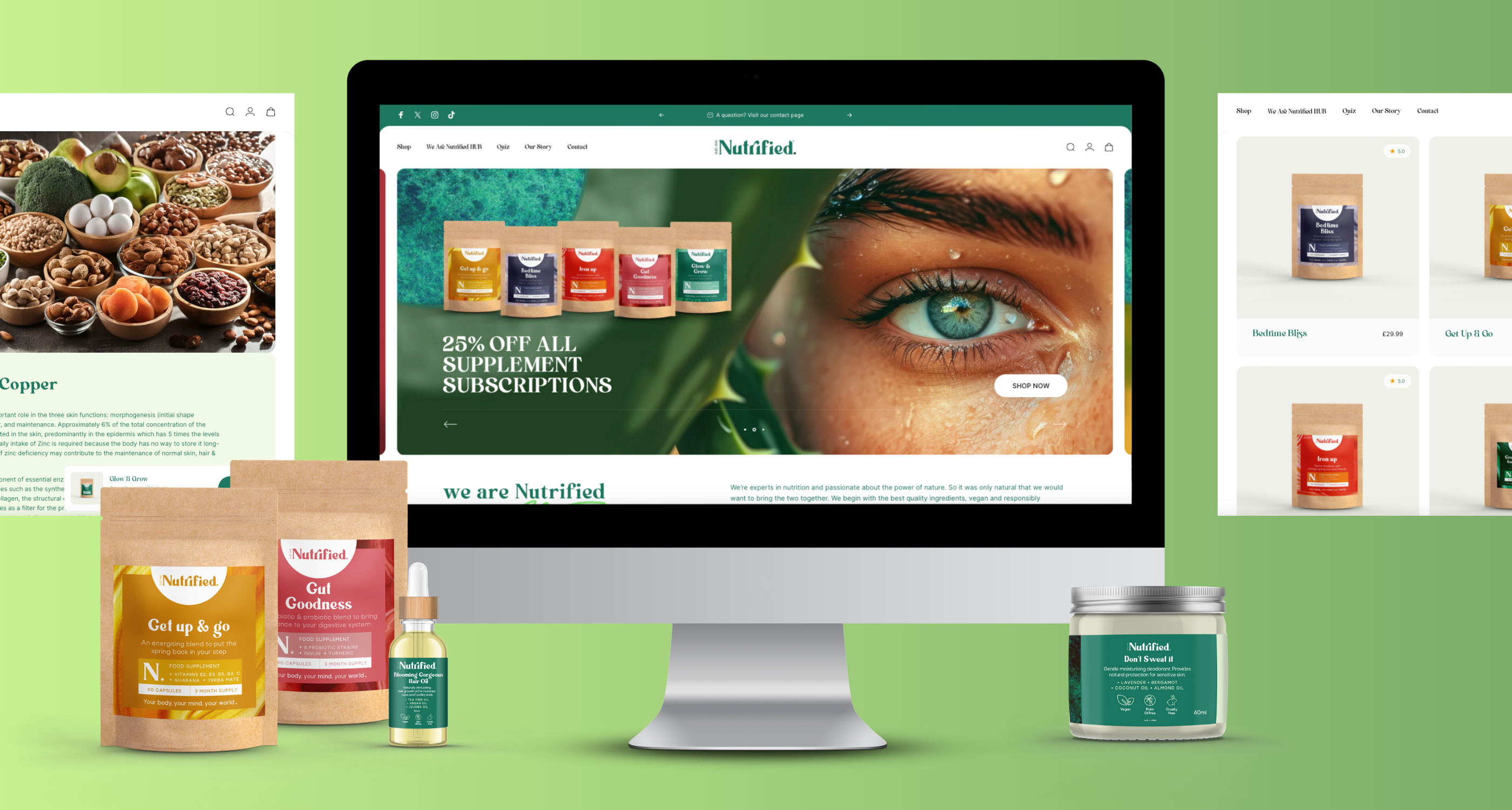 1HUTCH exceeded expectations by creating a fast, sleek, and user-friendly Shopify 2.0 store for We Are Nutrified, reflecting their unique brand and commitment to sustainability, vegan products, and eco-friendly practices. We delivered high-quality product renders, integrated a quiz app for personalised recommendations, and set up bundles and subscription options. Alongside managing organic and paid media, we performed a full SEO audit, ensuring ongoing optimisation. The result is a website that perfectly aligns with We Are Nutrified's ethos and vision, driving both engagement and growth.